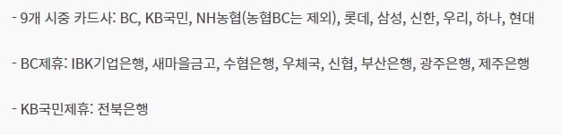 지원되는 금액과 카드사는 아래와 같습니다.